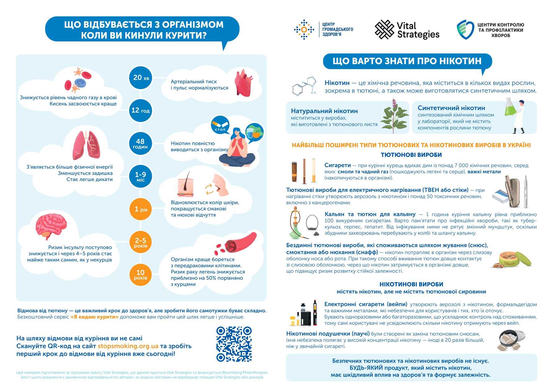 Центр громадського здоров’я МОЗ України (ЦГЗ) за підтримки Vital Strategies, Inc. спільно з експертами з громадського здоров’я при Українському католицькому університеті та лікарями розробив посібник «Розвиток напряму надання допомоги у відмові від куріння на рівні громади» (Посібник). Він призначений для фахівців громадського здоров’я та соціальної роботи, але також буде корисним лідерам громад, освітянам, представникам місцевої влади та всім, хто прагне створювати здорове середовище у своїх громадах.